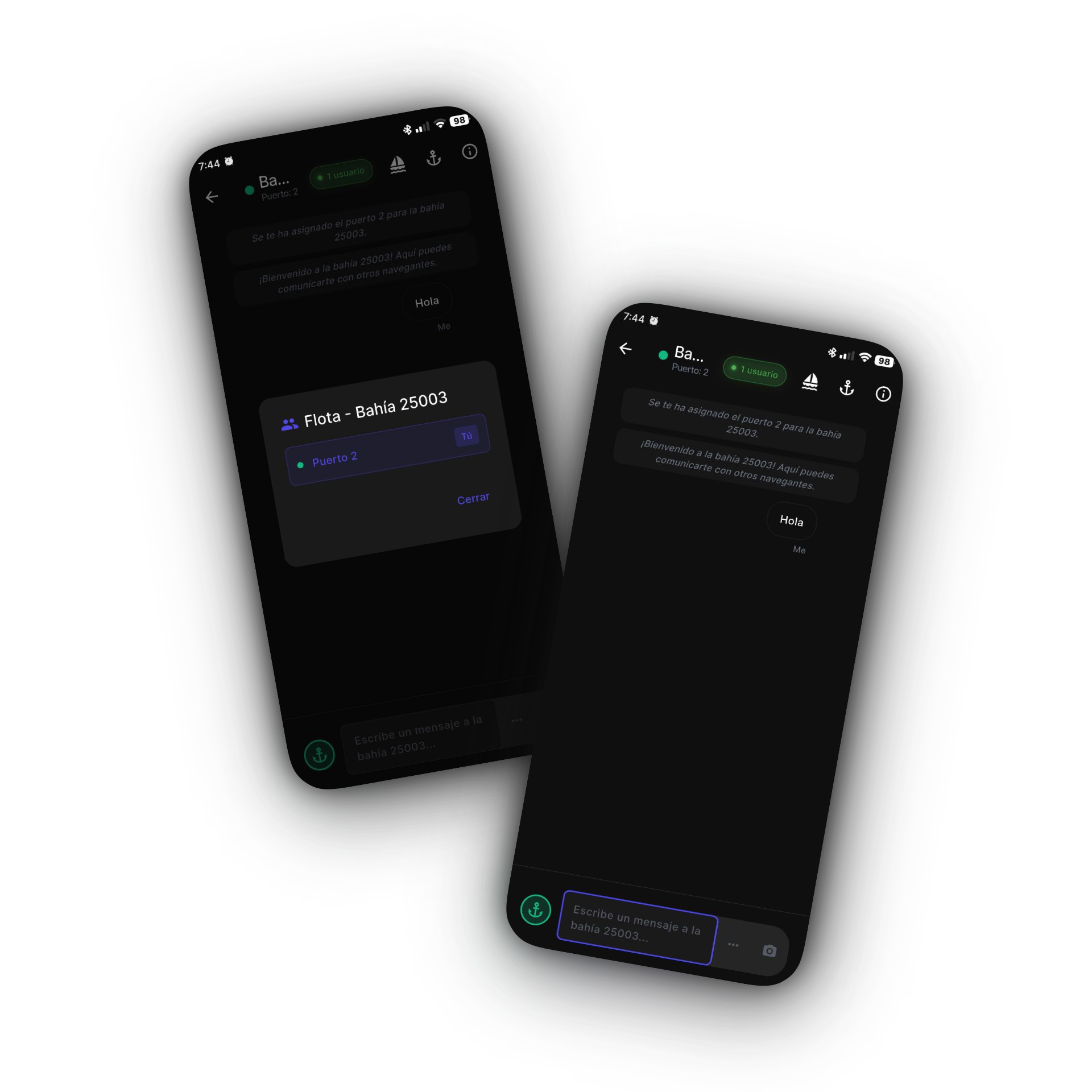 Únete a una bahía (sala de chat) o crea una nueva. No necesitas registro ni información personal.